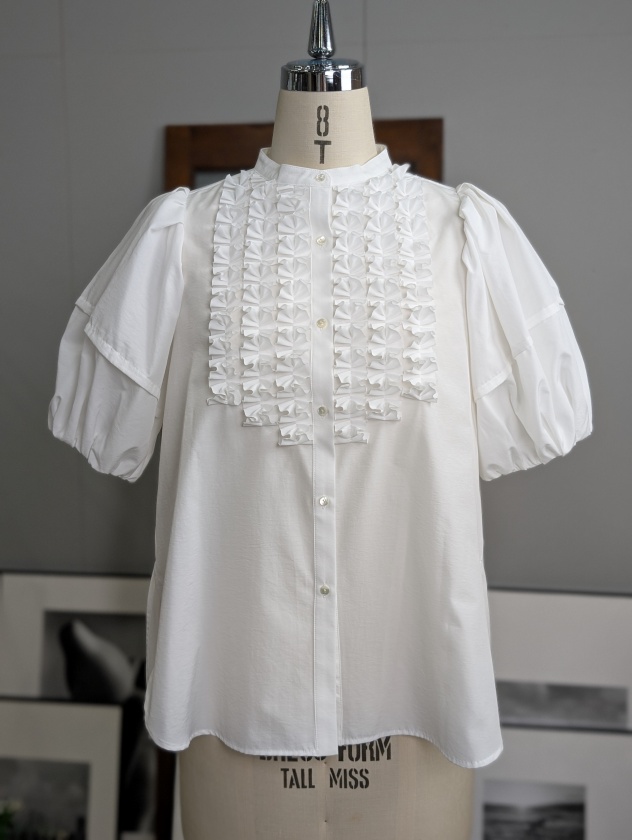 程よいハリと光沢感のある表情豊かなポリエステルタフタ素材を使用し、 繊細なスラブのニュアンスが、立体感のある美しいシルエットを演出します。