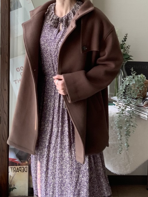 50%OFFで大変お買い得なミドルコートです!店頭でも大人気です。どちらのカラーも人気です!優しいブラウンカラーが肌なじみ良くおススメです!綺麗な春色のボトムとも合うので、まだまだこれから出番あります★