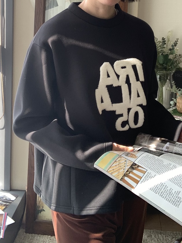 ボアで立体的なロゴが印象的!「TRA LALA」陽気な気分になれるロゴがデザインされていおります♪♪カットソー素材なので軽くて、保温性もある温かいトップスです。