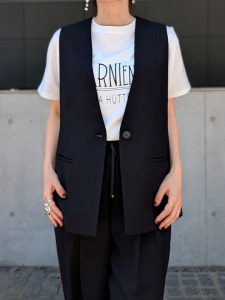 シャリ感のある軽めのツィード生地で、今の時期から大活躍のベスト♪ご好評につき追加しました!
