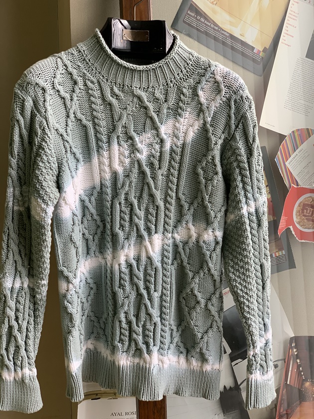 こちらのロベルトコリーナのタイダイ染めのモックネックニット、絶妙な良いグリーンに染まっていますね。