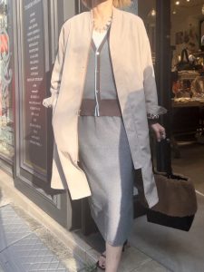 今年もこちらのコートが人気♪ 素材はポリエステルでシワを気にせず、オンオフどちらでも着ていただけます。レオパードの裏地も人気です。