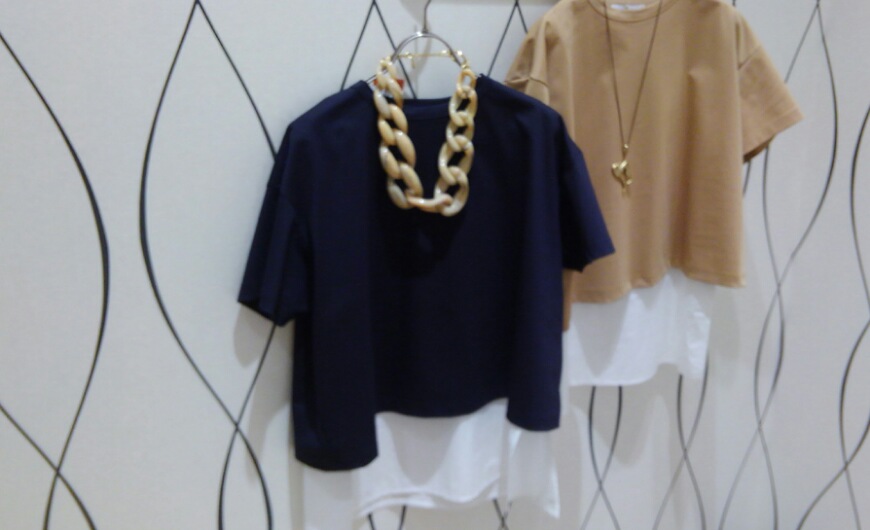 白いインナーはドッキングタイプ。一枚でサマになるオトナなTシャツですよー。
