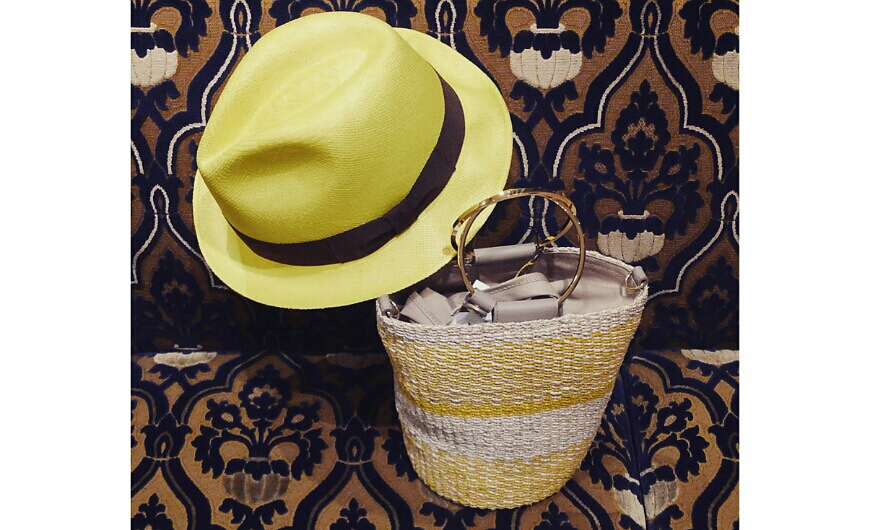 エクアドルの伝統的な編み込み製法を用いたK.DORFZAUNのパナマハットとコーディネートで使用したVIORA’dOROのバッグです♪