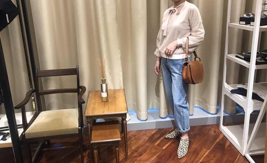 アクセントに流行のアニマル柄のショートブーツを合わせたり。
