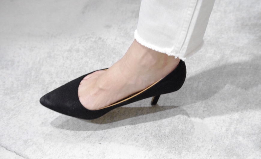 程よいワイド感のハイライズストレートパンツにはヒールを合わせてレディーらしさを出してみました。