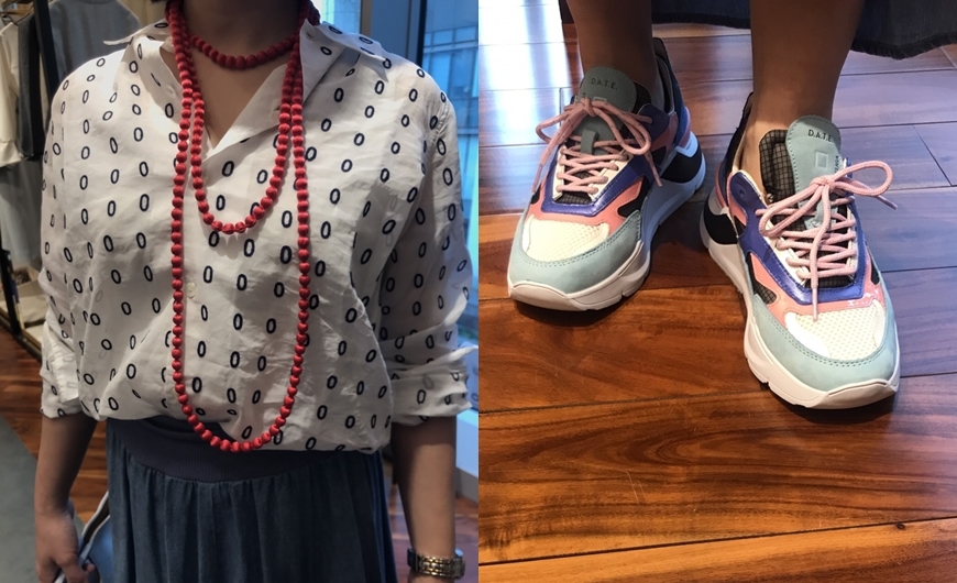 足元は配色が春らしいD.A.T.E.のスニーカーです。