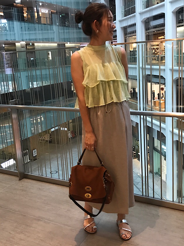 スカートにフリルのトップスを合わせたフェミニンなコーデ♪
