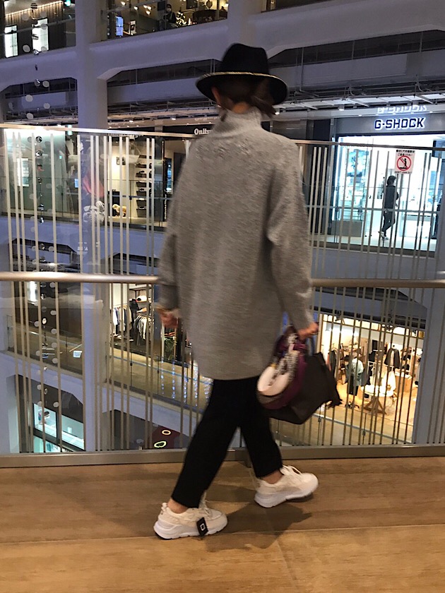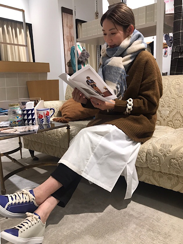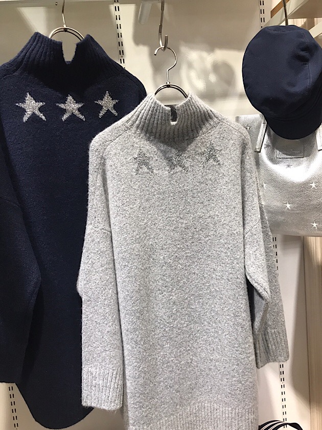 後ろの星マークがかわいいニットが届きましたので、暖かいレイヤードコーデをご紹介致します。