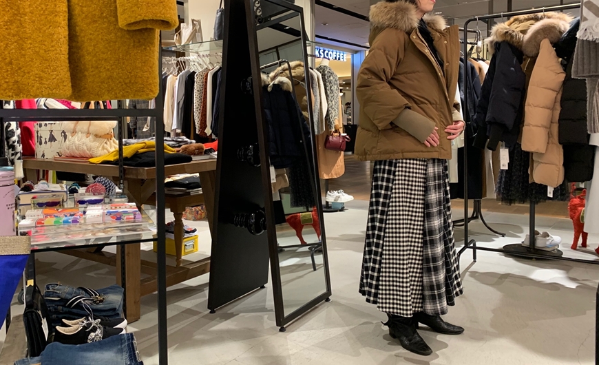 袖口の長めのリブ使いや、ラクーンファーがアクセントになっています。(ファーは取り外しが可能です。)