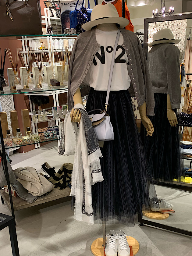 No.21のTシャツにラメカーディガンを合わせたコーディネートがオススメです。