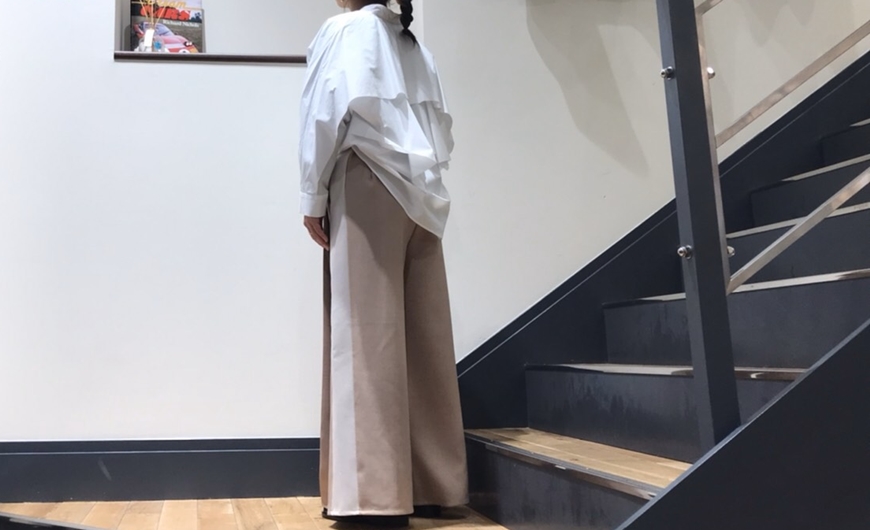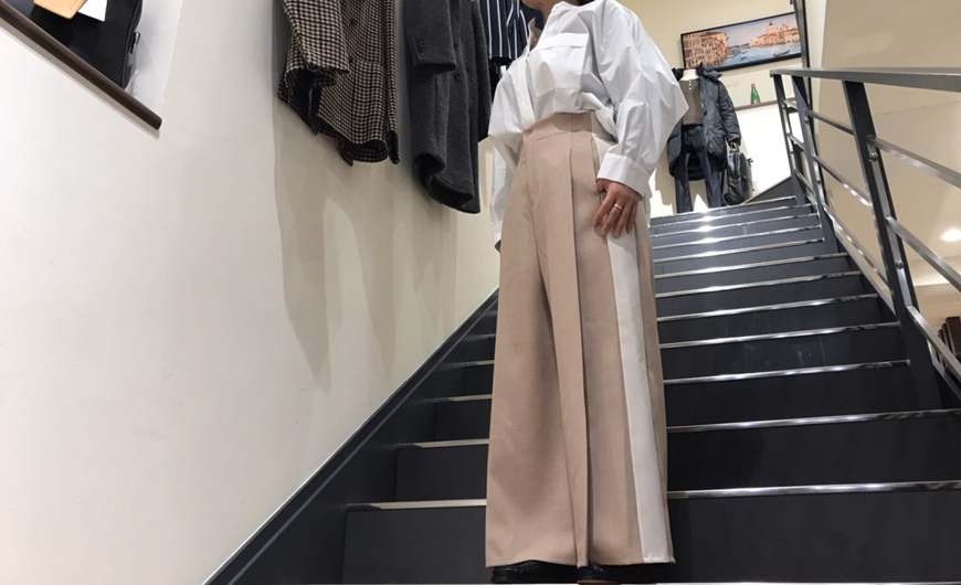 サイドラインが入ったワイドパンツは裾にスリットが入っており、軽やかな足どりに!