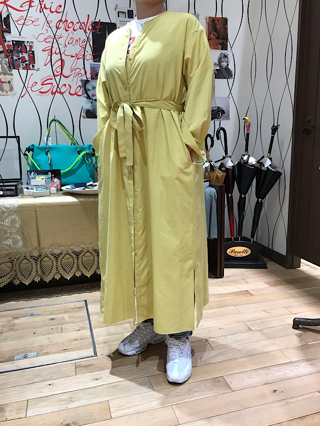 ベルトが付いているので前をしめて1枚でワンピースにも。