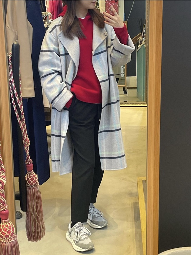 暗くなりがちな冬コーデがアウターで一気に明るくなりますね★(スタッフ身長:158cm)