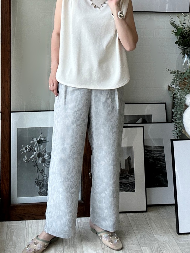 光沢のある、かすり模様が大人な印象なワイドパンツです✨