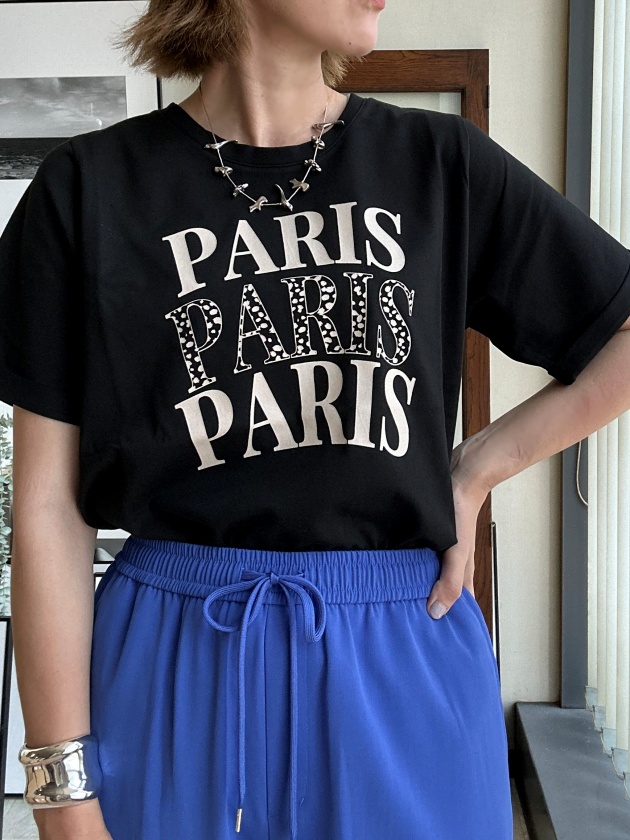 店頭でも早速人気の「ParisParisParis Tシャツ」ブラックとホワイトの2色で、モノトーンコーデにもおすすめです。