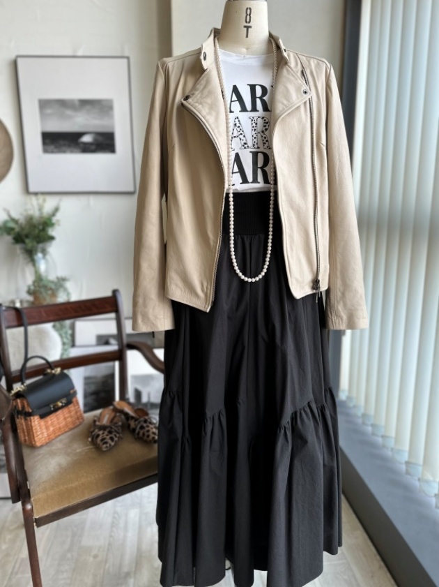 お揃いのレオパードパンプスに、レザージャケットで一足早く秋っぽいコーディネートに♪