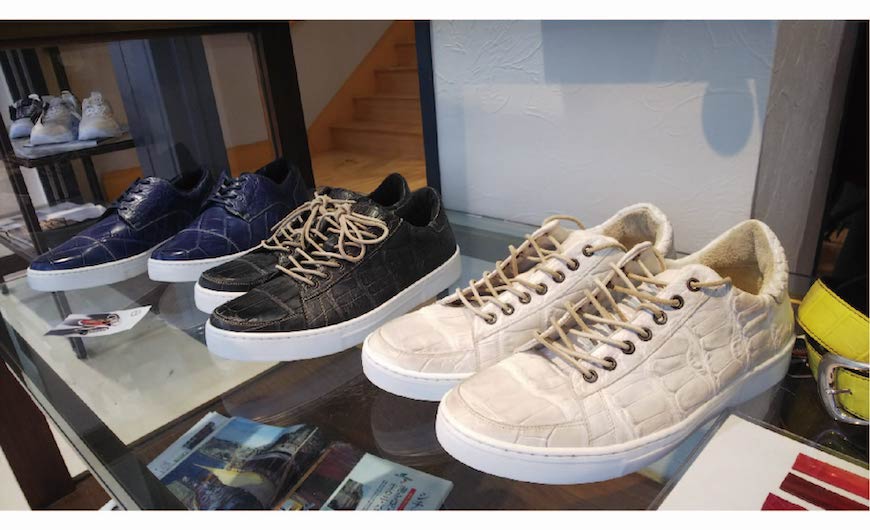 リアルクロコダイルのダーミのシューズが展開されていて、パーソナルパターンオーダーも可能です。
