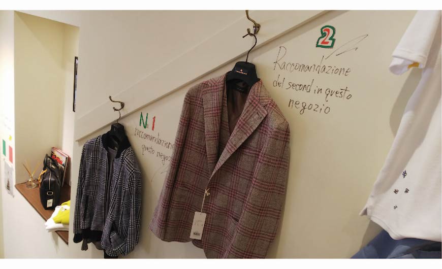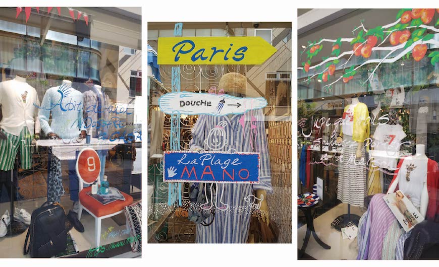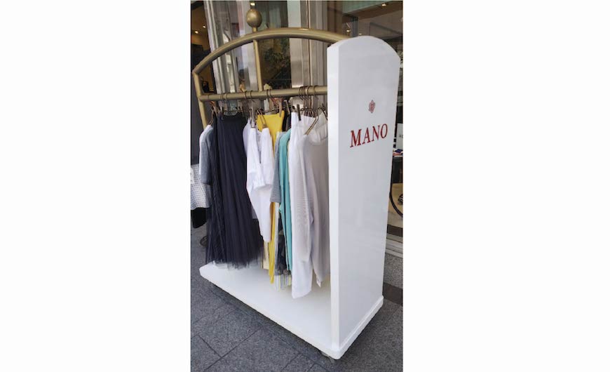 MANOはイタリア語で”手”の意味ですので、手書きの再現不可能なイラストで味付けたダブルウィンドウがあり、メンズとレディースが両サイドに個性的に飾られています。