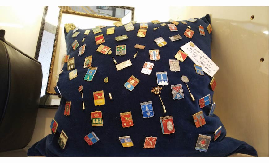 スロバキアやロシアの珍しいピンバッジも。1つ4,500円(税抜き)です。