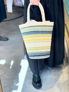 こちらも毎年ご好評のかごバッグです!ボーダーが爽やかで、春夏のワンピースにコーデにもぴったりですね♪ペットボトルやポーチ、お財布もポンポン入る容量の優秀かごバッグ。