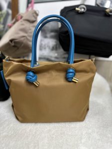 ナイロンのボディに牛革ハンドルがお洒落なバッグ✨日本製、バッグの中身と機能的でとても使いやすい!と評判のトートバッグです。MサイズはA4サイズも収納可能なので、お仕事用としてもおススメです。また、Sサイズはショルダーベルトが付属しているのでご旅行や普段のお出かけに♪新色のキャメル×ブルーハンドルが、おすすめです。