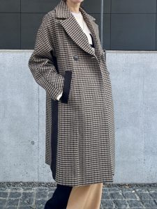 身頃とアーム部分でチェックの方向を変えて縫製し、切り替えのサイドラインがお洒落な一着となっております。ちょうどいい着丈でから着ていただけるので出番も多くなるはず!お洒落な冬コートをお探しの方へおすすめです✨