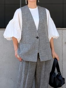 • Passione ツィードセットアップ(パンツ・ベスト)                     見た目はクラシカルでも、素材は驚くほど軽やか。