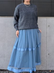 LOOK 08|ラメ混ニット × ブルーチュールスカート