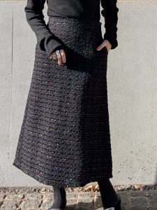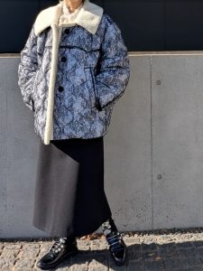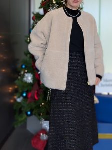 ふわふわのボアとツイードの組み合わせが、大人の温もりと上品さを両立。