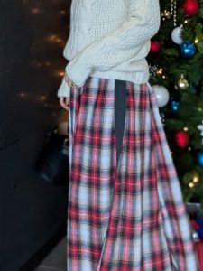LOOK 05|ケーブルニット × レッドチェックロングスカート