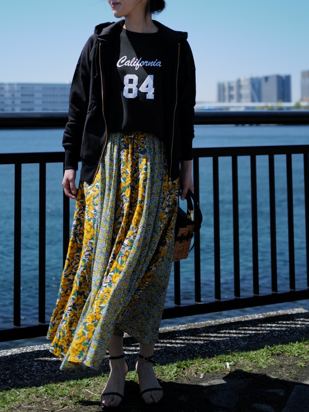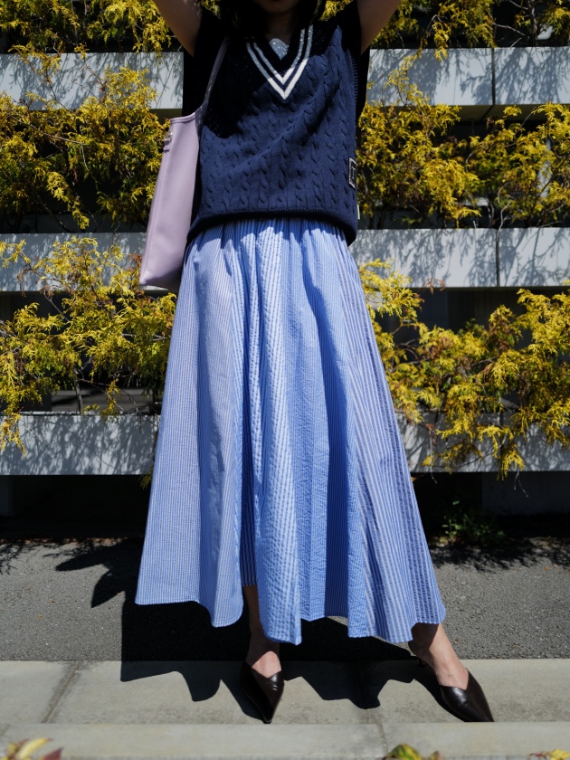 バランスよくまとまるのがMONILEスカートの魅力。