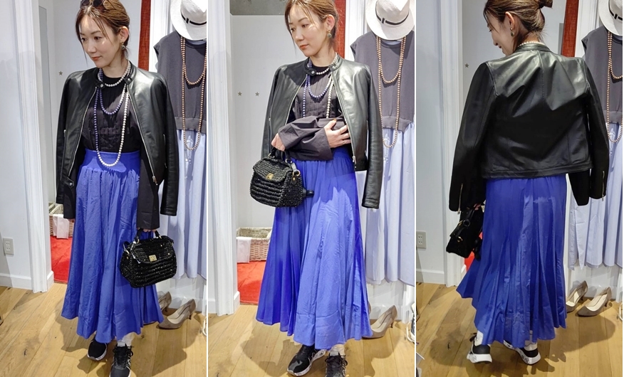 着用スタッフ 身長;163cm ロングスカート(ブルー)