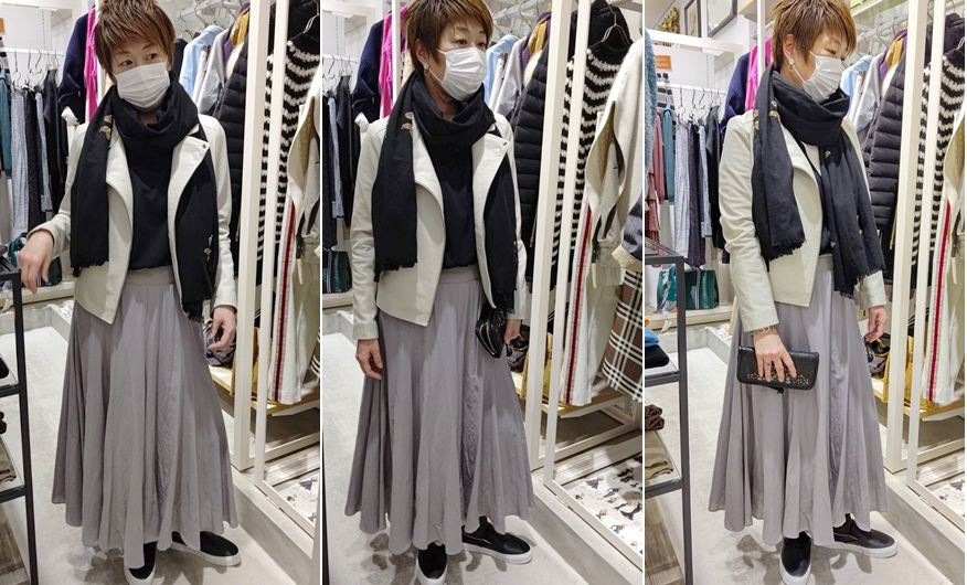着用スタッフ 身長;167cm ロングスカート(ライトグレー)
