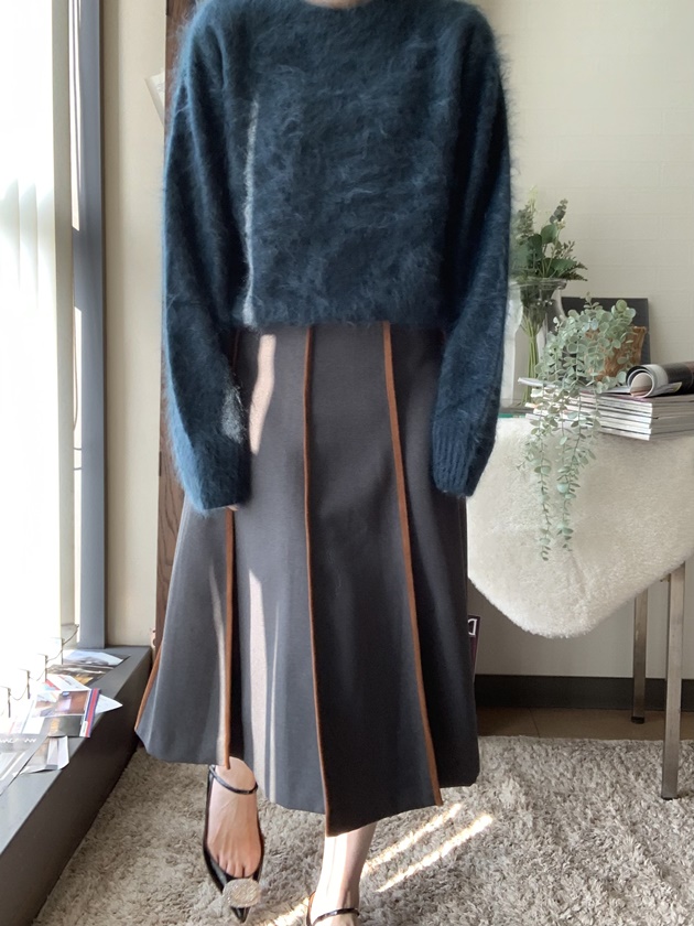 チャコールグレーのスカートに合わせ、落ち着いた大人なスタイリングに♪