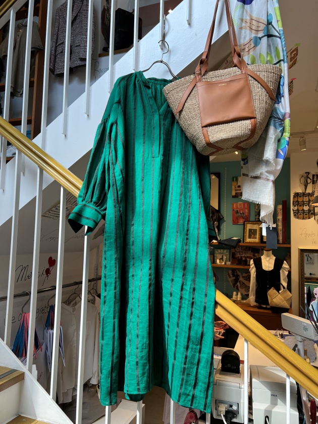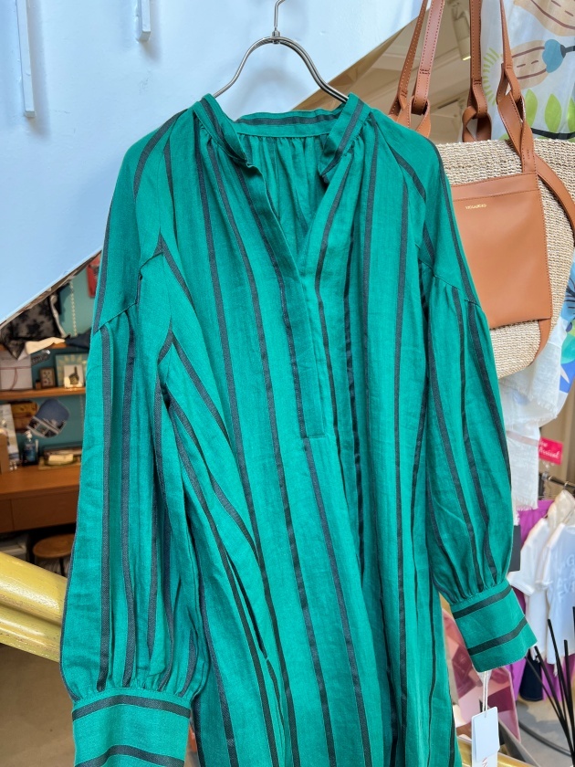 今年は特にストライプ柄が人気でよく見かけますね♪ 麻混の爽やかなドビーストライプ生地のシャツワンピです、春~秋までお召しいただける素材感となっていて、腰に巻いてスカートとしてのアレンジも可能です✨普通のストライプと違って、ちょっと他人と差が付くデザインとなっています✿ 店頭でも人気の高いワンピースです。(着用スタッフ:153㎝)