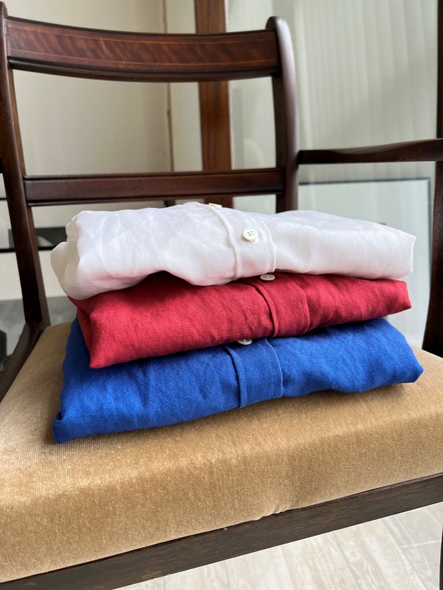 高級リネンとして有名なハードマンズの生地を使用したリネンシャツが人気上昇中です✨ベーシックアイテムとして永くご愛用頂けるように、シンプルにこだわったデザインとなっております。きれい目なボトムと合わせてリラックス感のある大人コーデや、プリントドレスに羽織って、リゾートカジュアルにも、夏の日除けアイテムとして様々なシーンで活躍してくれこと間違いなし!なアイテムです。